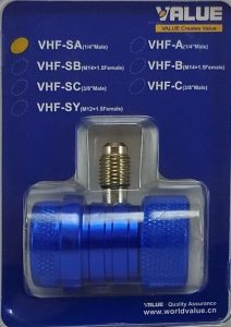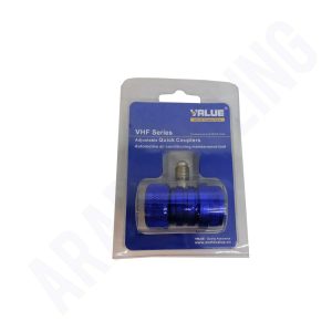 کوپلینگ آبی Value برای اتصال شلنگ گیج منیفولد به شیر فشار پایین سیستم تهویه مطبوع خودرو استفاده میشود تا عملیات شارژ گاز و وکیوم به درستی انجام شود.